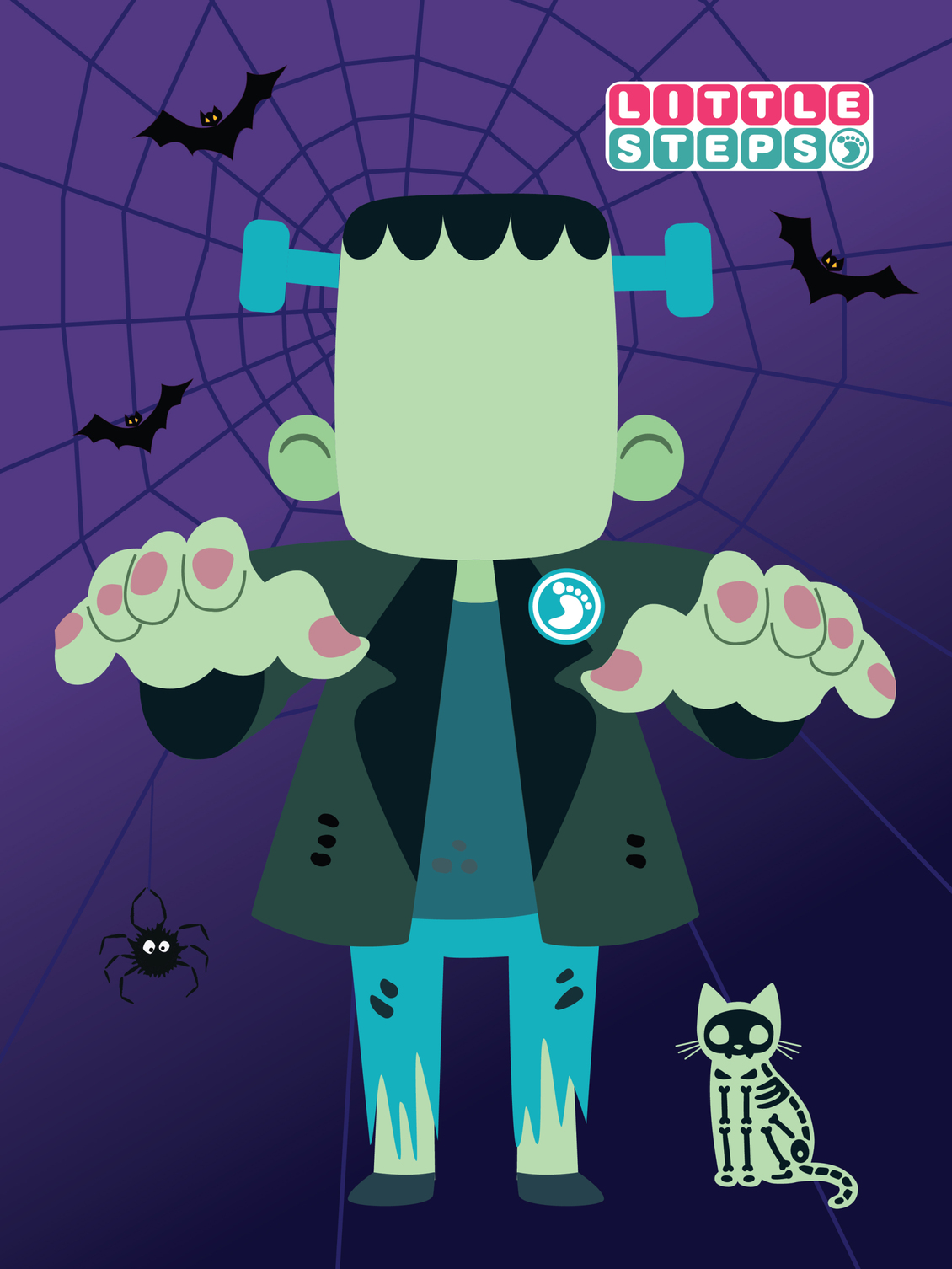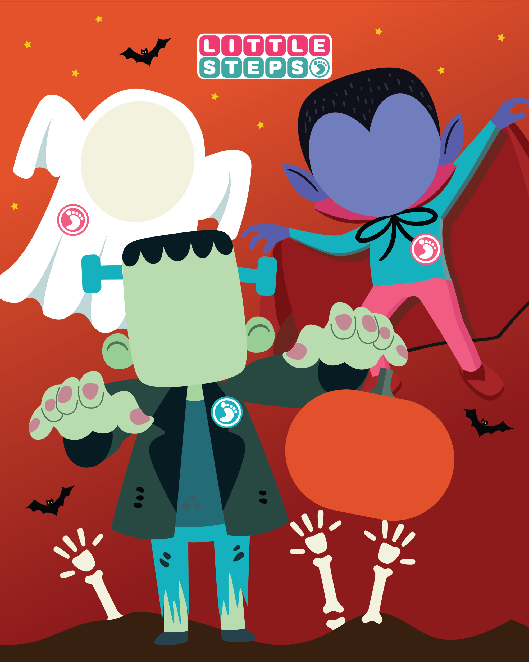 Little Steps Halloween 4 Halloween photo standees featuring different Halloween characters, each standee is 36in x 48in. Date: October 2019 Client: Little Steps Role: Tags: illustration, kids