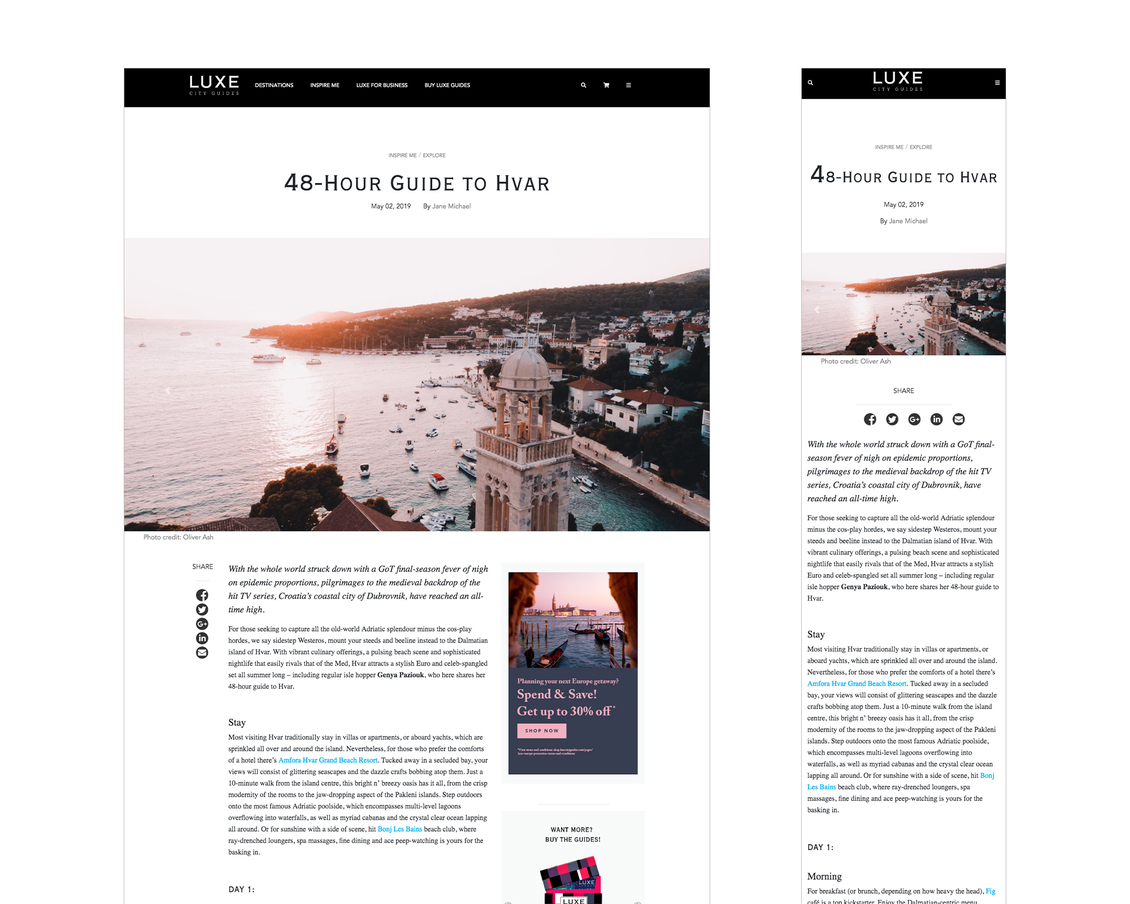 Redesign the LUXE City Guides website, so that the content is displayed in a more attractive way and provide better user experience.